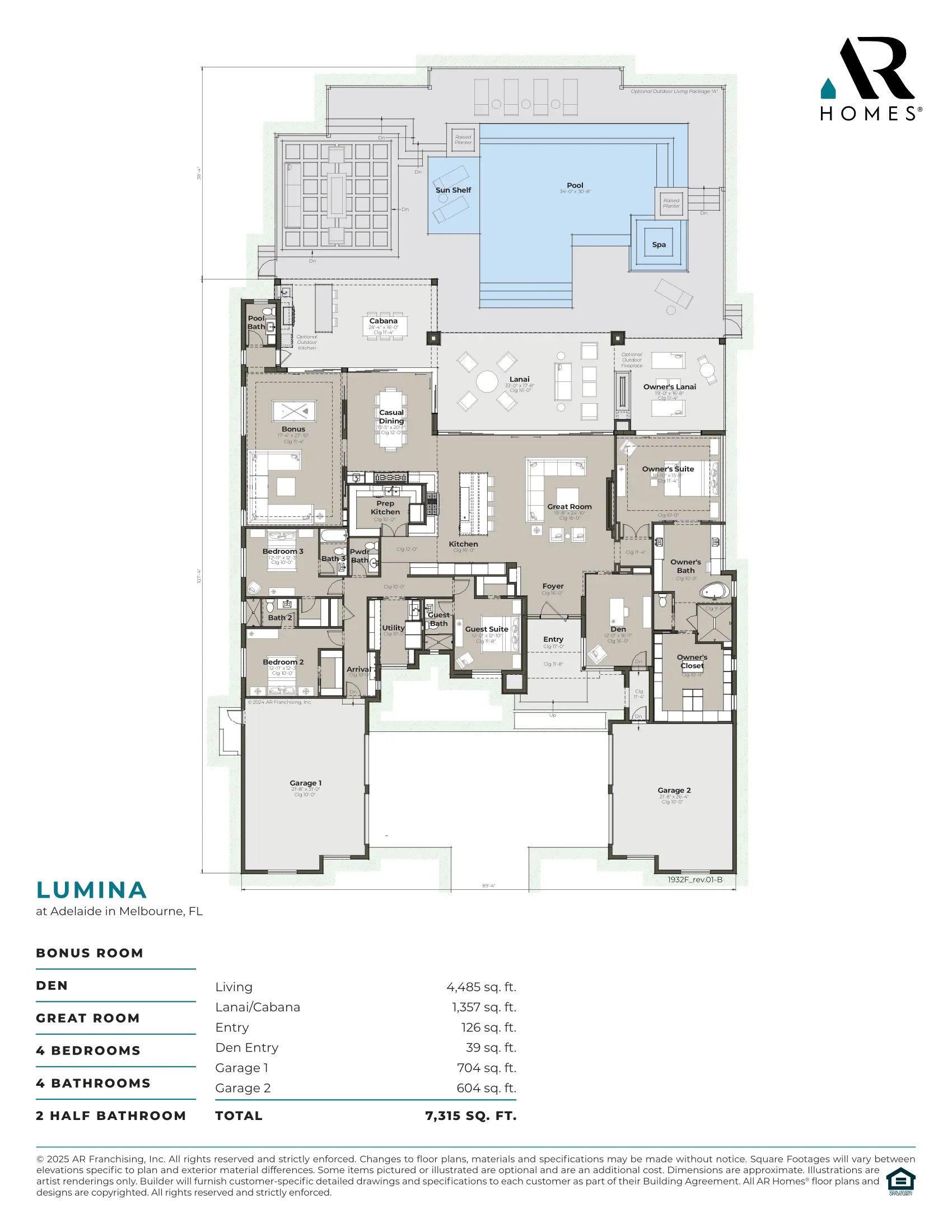 The Lumina, coming soon to Viera, perfectly captures the essence of modern Florida living. Spanning 4,485 square feet, this home offers 3 bedrooms, 3 bathrooms, a den, a bonus room, and a 3-car garage. Inside, a wine room adds a touch of sophistication, making it ideal for entertaining or relaxing in style.